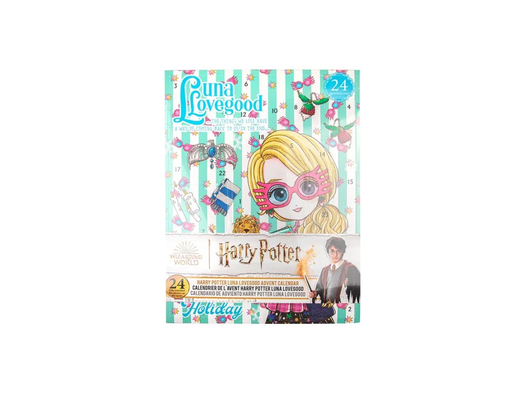 Адвентният календар Луна Лавгуд включва 24 различни подаръка: чорапи, чанта с презрамка, маска за очи, ключодържател, хайлайтър, обеци, гребен, подскачаща топка, огледало, Washi лента, значка, бележник, печат, линийка, химикал, гума, карфица, плетена лепенка, подложка за чаша, пъзел, коледна украса, магнит + още.