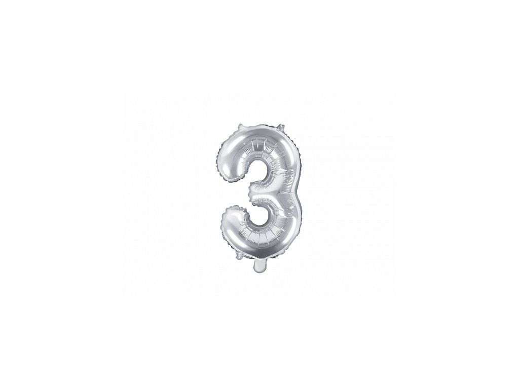 Балон от фолио Mini - число 3 сребърен 35 см