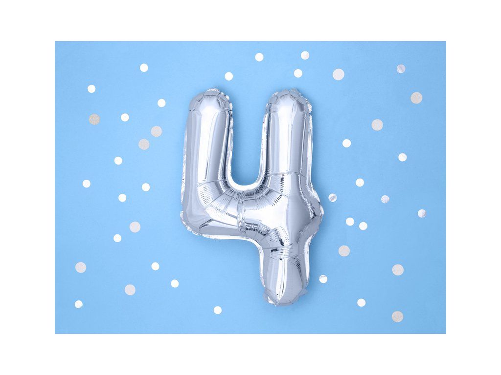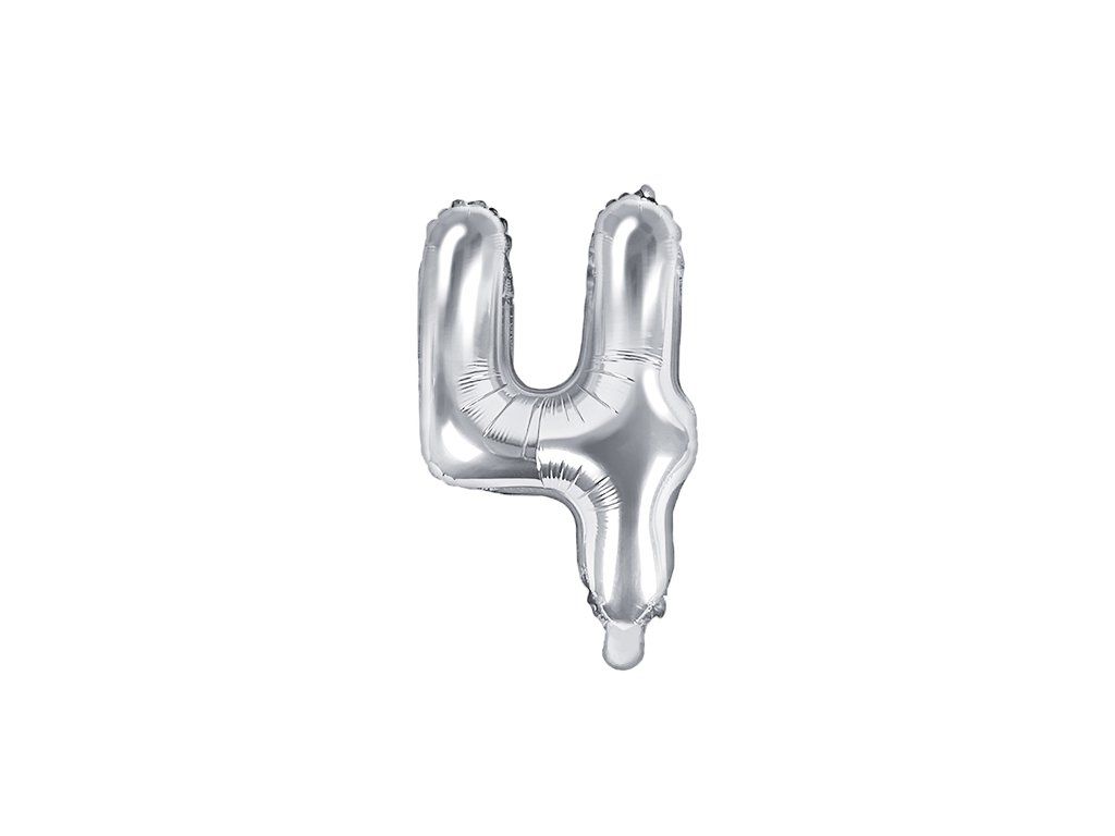 Балон от фолио Mini - число 4 сребърен 35 см