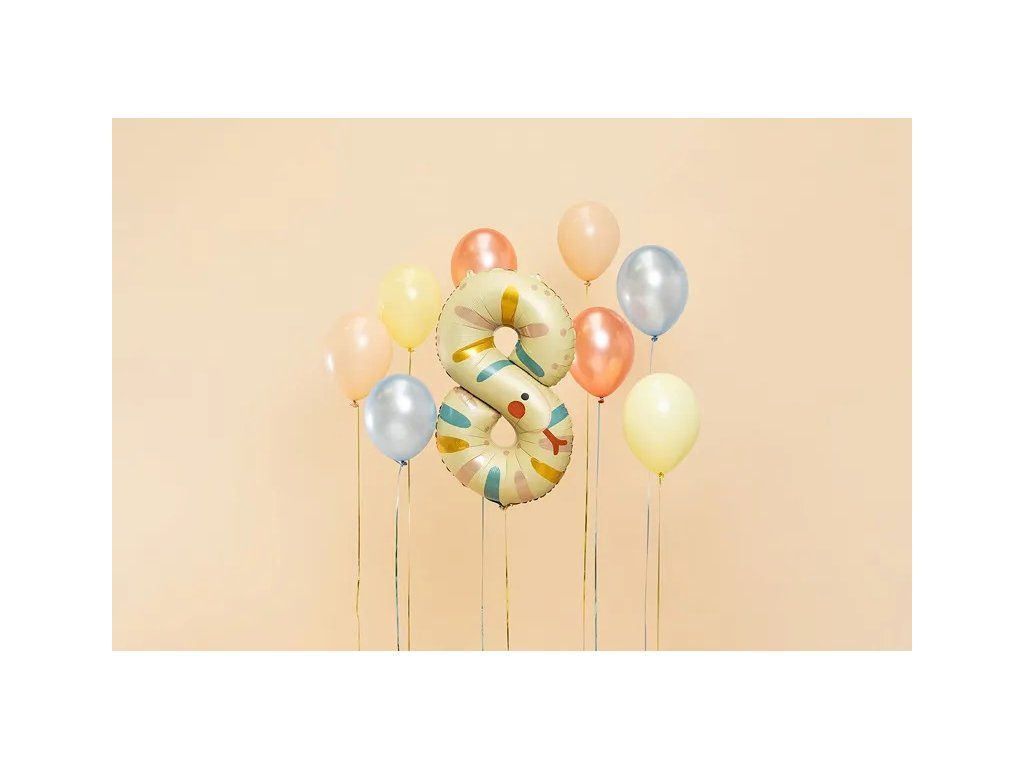 Освежете украсата за рожден ден с фолиеви балони във формата на число със симпатична шарка. Въпреки че са по-скъпи от класическите латексови балони, те имат своето предимство с качеството и непропускливостта си. Фолиевите балони, напомпани с въздух, ще ви служат няколко месеца без значителни промени. Ако надуете балон от фолио с хелий, можете да разчитате, че той ще лети около 14 дни, а формата му няма да се промени около 7 дни.