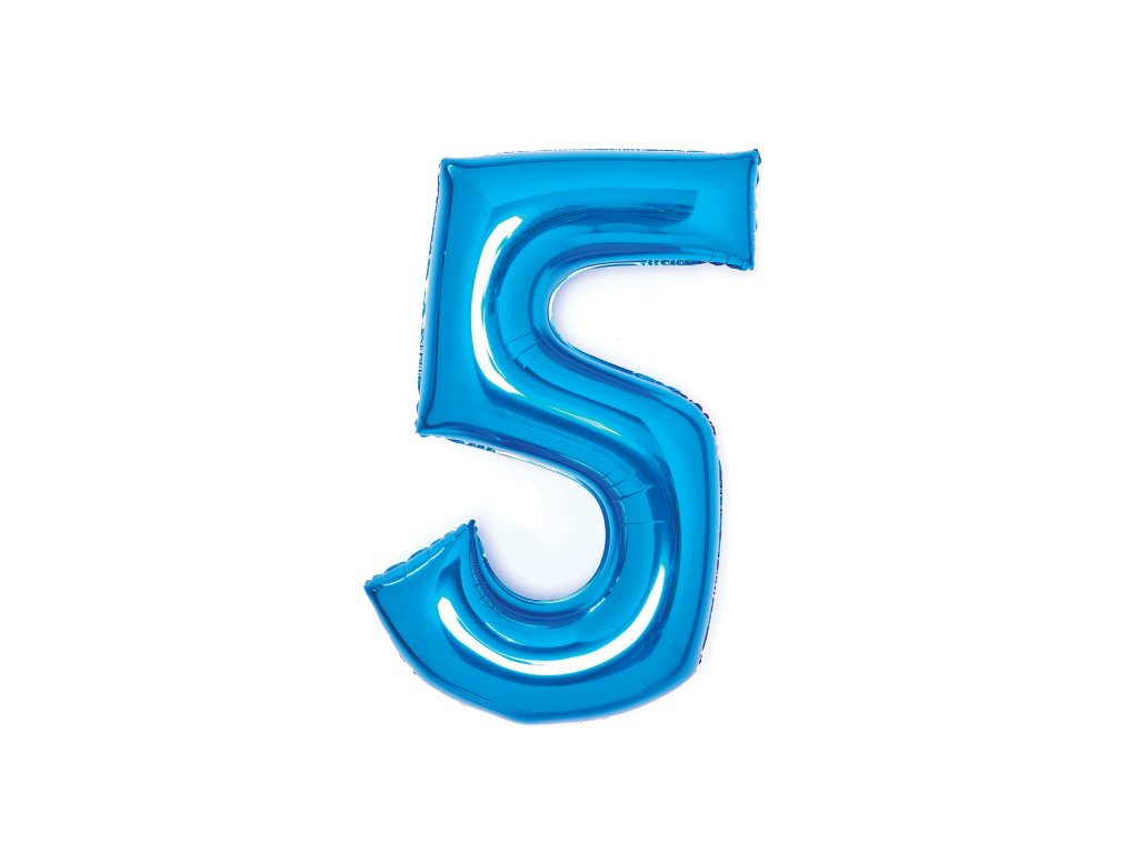 Балон от фолио с цифра - синя петица, 5, 66 см