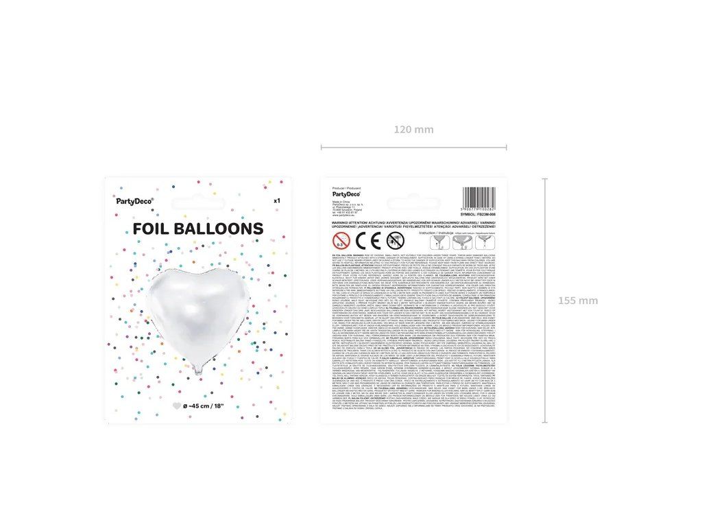 Балон от фолио, Сърце, бял, 61 см