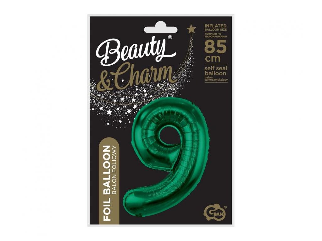 Балон от фолио цифра 9 тъмнозелен 85 см