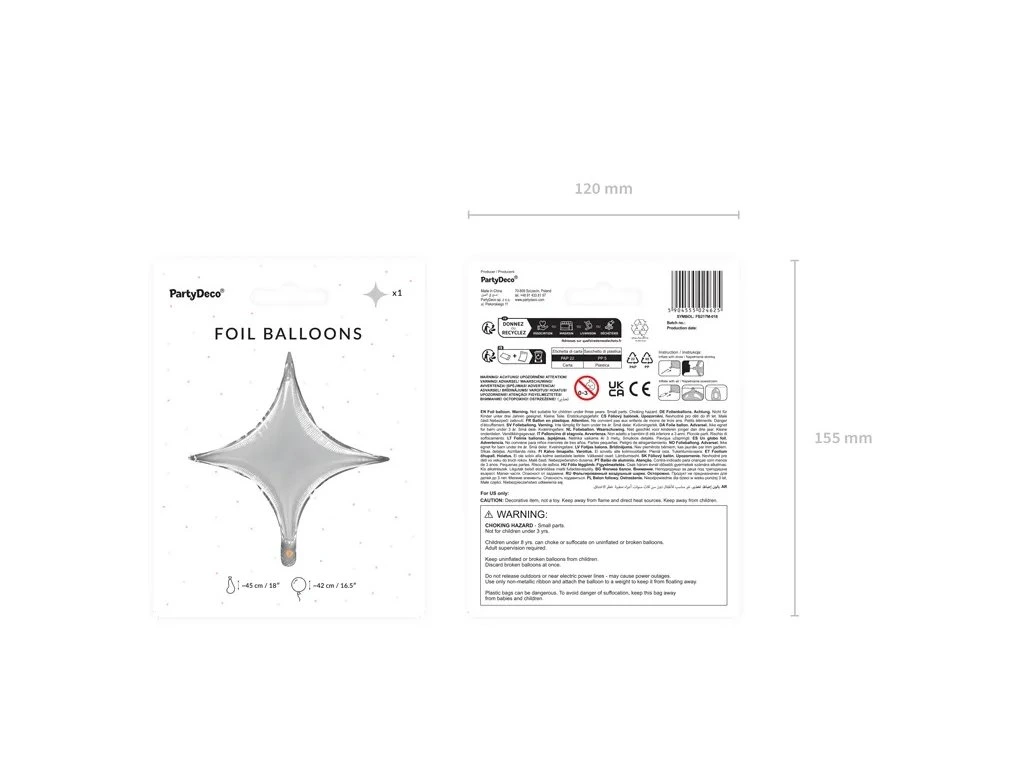 Балон от фолио Звезда, сребърен, 45 см