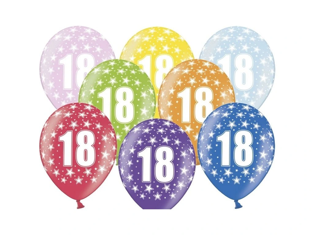 Латексов балон с принт число 18 е подходящ за украса на празненство за 18-ти рожден ден. Парти балоните са с високо качество и може да бъдат надути с въздух или хелий.
