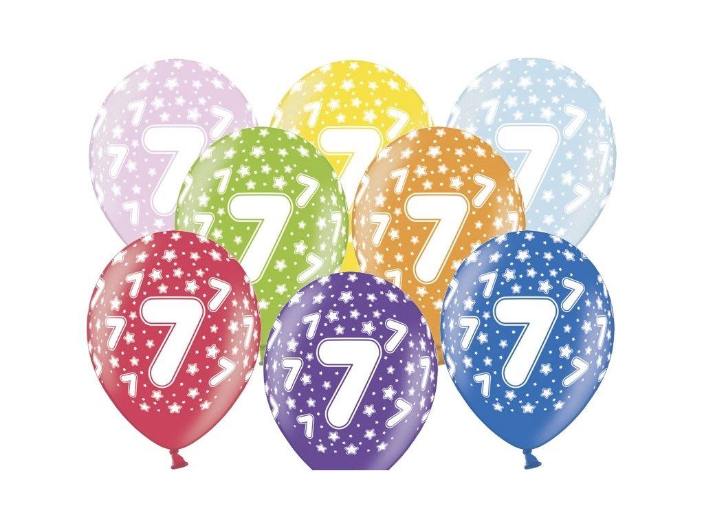 Латексов балон с принт число 7 е подходящ за украса на празненство за 7-ми рожден ден. Парти балоните са с високо качество и може да бъдат надути с въздух или хелий.