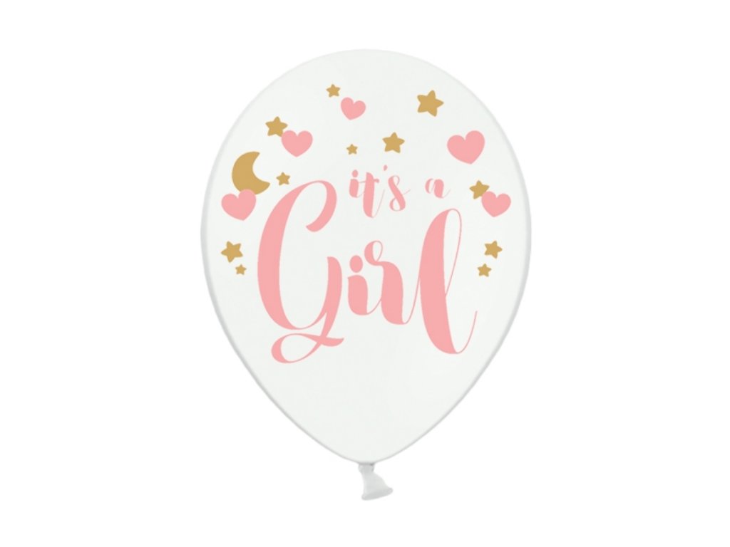 Латексов балон в бял цвят с принтиран надпис It´s a Girl (Момиче е) е подходящ за украса на празненство за посрещане на бебе - baby shower. Парти балоните са с високо качество и може да бъдат надути с въздух или хелий.