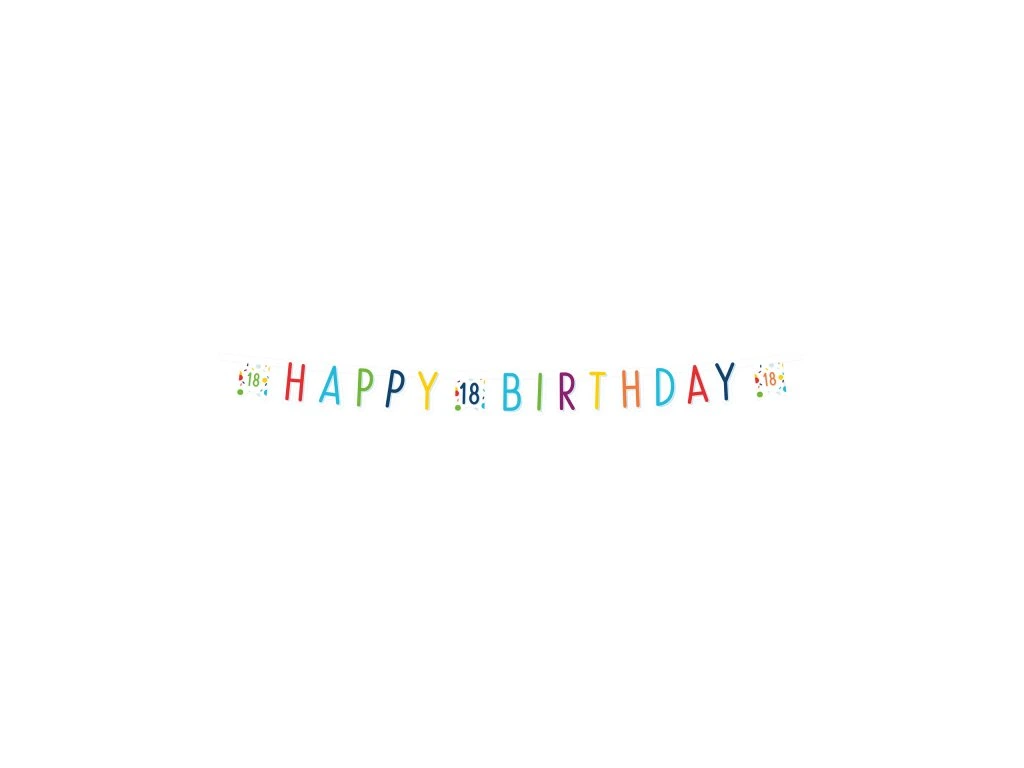 Създайте цветна украса за парти с банер за Честит рожден ден. Този банер е идеален за празнуване на 18-ти рожден ден.