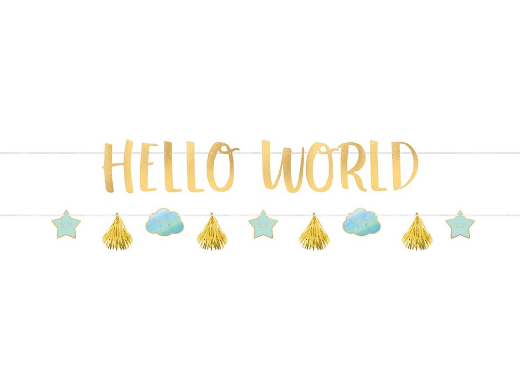 Банер с надпис Hello world, с който ще поздравите майката и бебето по оригинален начин.