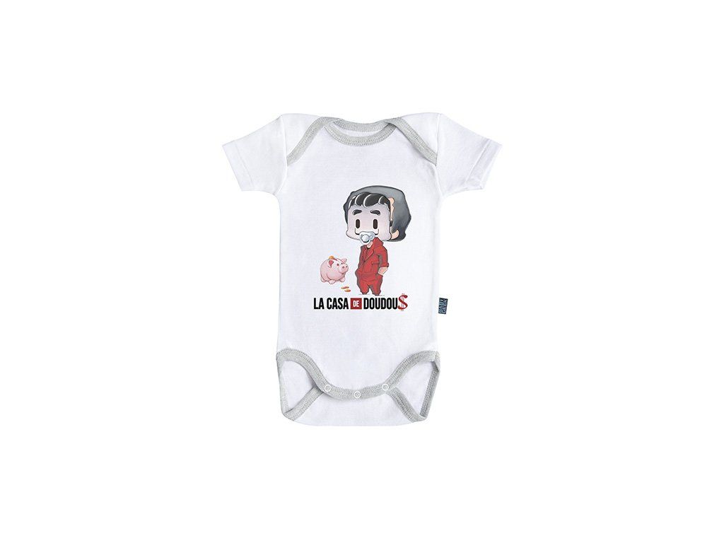 Бебешките бодита са част от всеки бебешки гардероб и сега можете да ги освежите с оригиналната щампа La casa de Doudou от любимия сериал La casa de Papel Разгледайте нашите удобни бодита за бебета и изберете нови любими, които са красиво опаковани в подарък кутия.