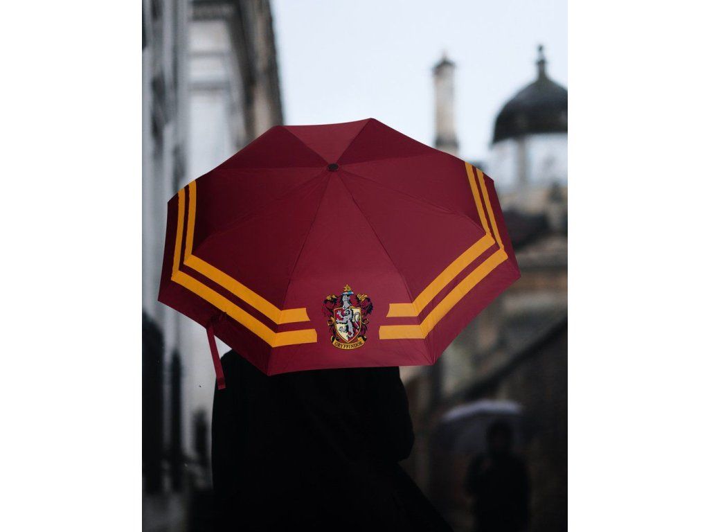 Защитете се от дъжда с този чадър Грифиндор. Този чадър има емблемата на Грифиндор и е с диаметър 121 cm при отваряне. Той се предлага с водоустойчив джоб за сгъване на чадъра. Благодарение на малкия си размер, чадърът Грифиндор е идеалният аксесоар за пътуване.