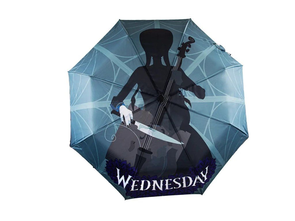 Бъдете стилни във всякакво време! Чадърът е с оригинален дизайн и принт на Уензди, напълно автоматичен и много практичен благодарение на сгъването. Чадърът ще бъде чудесен аксесоар за всички любители на поредицата за Уензди.