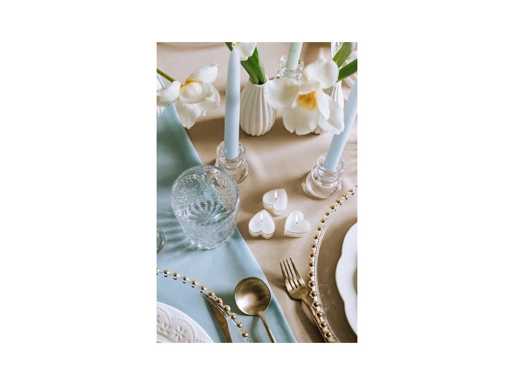 Чаената свещ във формата на сърце е деликатен детайл, който придава на масата изискан и романтичен вид. Формата ѝ внася нежност и любов във всяко пространство, което я прави идеална за специални събития или романтични вечери.