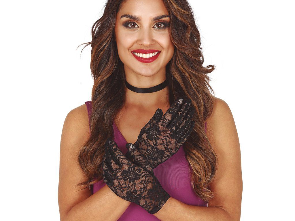 Черни дантелени ръкавици, 22 см