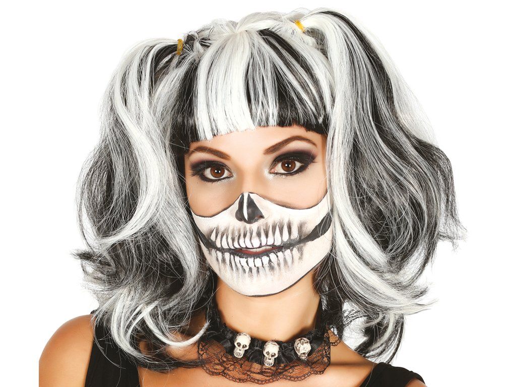 Вашият карнавален или Хелоуински костюм може са изглежда по-достоверен благодарение на разни аксесоари като и с тази Черно-бяла перука с опашки. Този аксесоар пасва на различни карнавални костюми на тема Магьосница, разбира се, че това го оставяме на Вашето въображение.