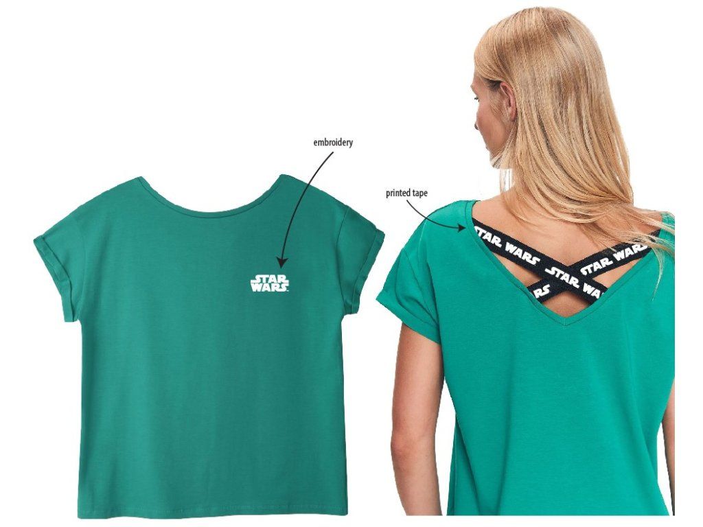 Цветното модно облекло позволява на дамите да избират удобни дрехи за спорт и ежедневни облекла с оригиналния принт на Star Wars. Тениската с къс ръкав е семпло модерно облекло, независимо дали комбинирате с нея по-елегантни или спортни аксесоари, определено не бива да липсва в гардероба.