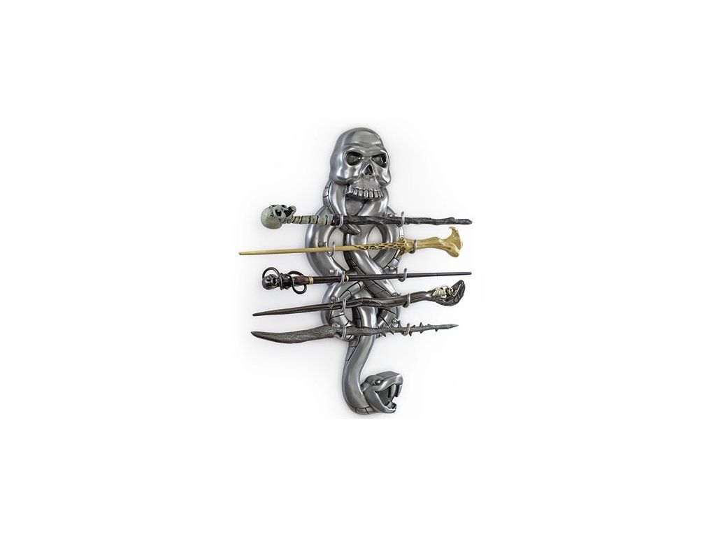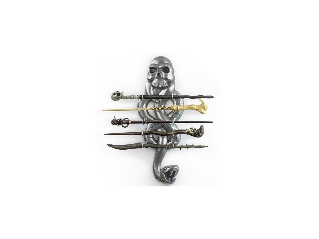 Този уникален комплект от тъмни магьоснически пръчици от филмовия свят на Хари Потър включва впечатляваща висяща стойка, пръчката на лорд Волдемор и още 4 пръчки на смъртожадни. Красива декорация и част от екипировката на поклонниците на магическите изкуства.