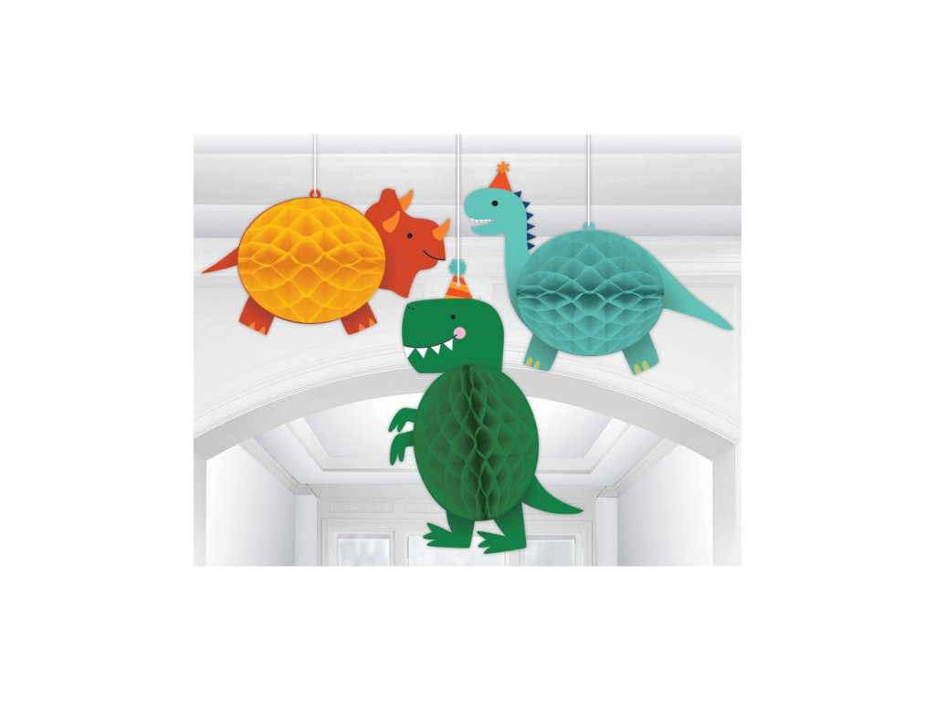 Създайте красиви парти декорации с тези висящи декорации на тема "Динозаври". Те са подходящи като парти декорация за рожден ден или парти на тази тема.