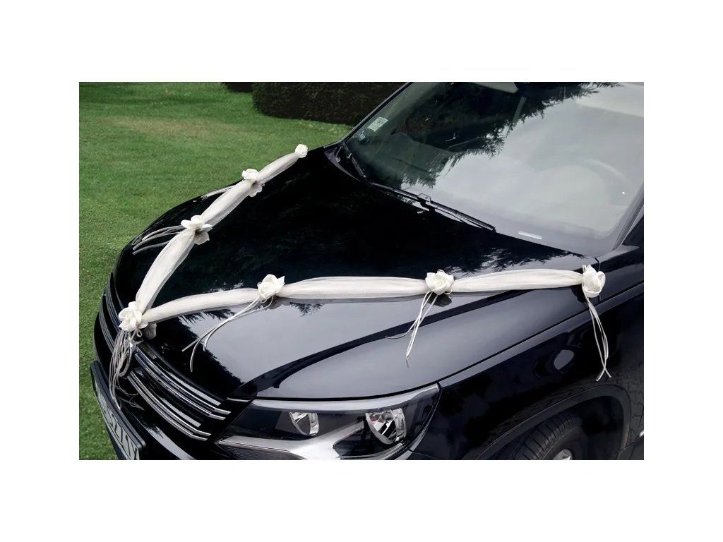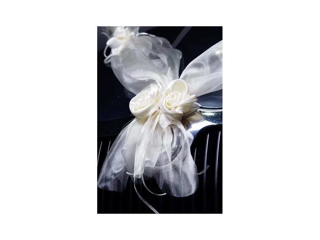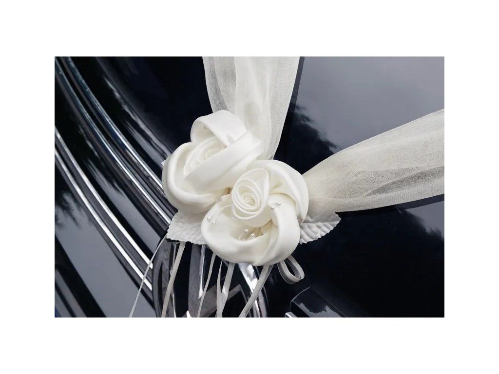 Всеки детайл на сватбеното тържество е важен и затова вашия сватбен автомобил заслужава най-красивата украса. С този гирлянд с кремави рози и панделки, украсени с перли, автомобилът ви ще се превърне не само в средство за придвижване, но и в истинско символично бижу на вашия голям ден. Бъдете център на внимание на пътя и очаровайте всеки минувач с тази украса.