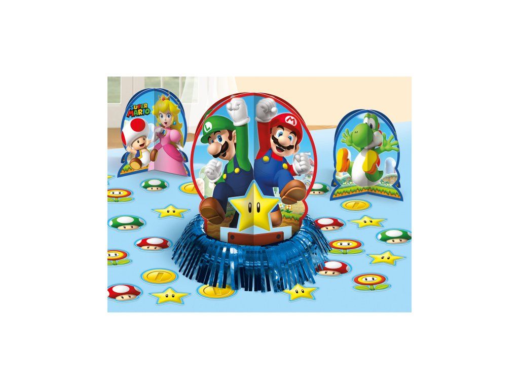 Тематичният комплект декорации за маса е перфектен за празненства на тема видео играта Супер Марио. Декорациите са изработени от хартия и фолио.