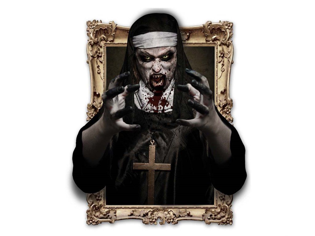 Организирате страховито Хелоуин парти? Създайте неповторима атмосфера за Хелоуин с помощта на различни страховити декорации, като тази декорация за стена - зомби монахиня.