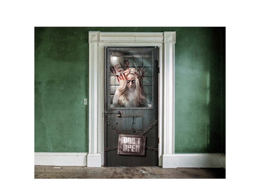 Тази самозалепваща се декорация с Help me е лесна за използване – просто я залепете на вратата и веднага ще създадете тематична атмосфера за Хелоуин.