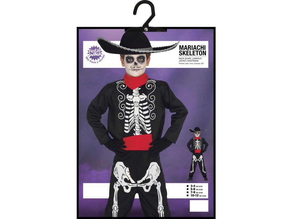 Подготвяте ли детето си на карнавал или купон? Вземете му този оригинален костюм Мексикански скелет, с който със сигурност ще бъде звездата на вечерта. Подходящ е за Хелоуин парти, карнавал или други поводи. Оставяме го на Вас и на Вашето въображение.