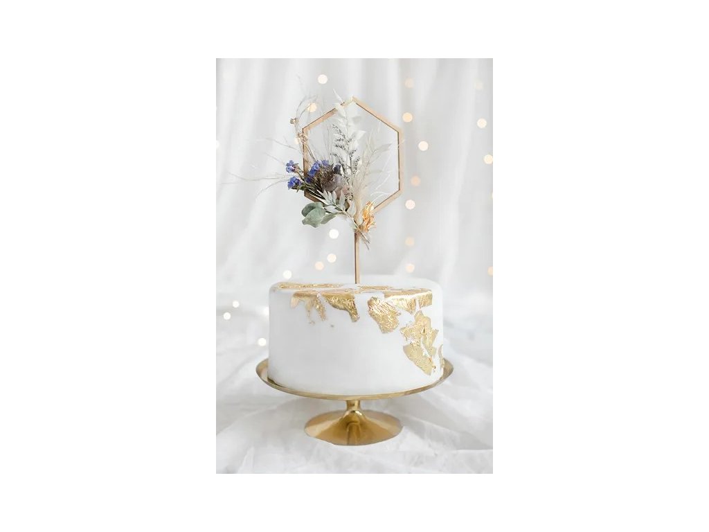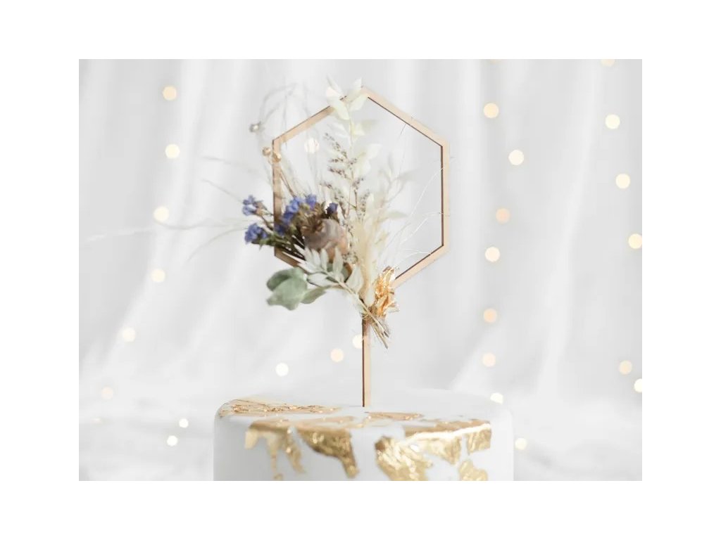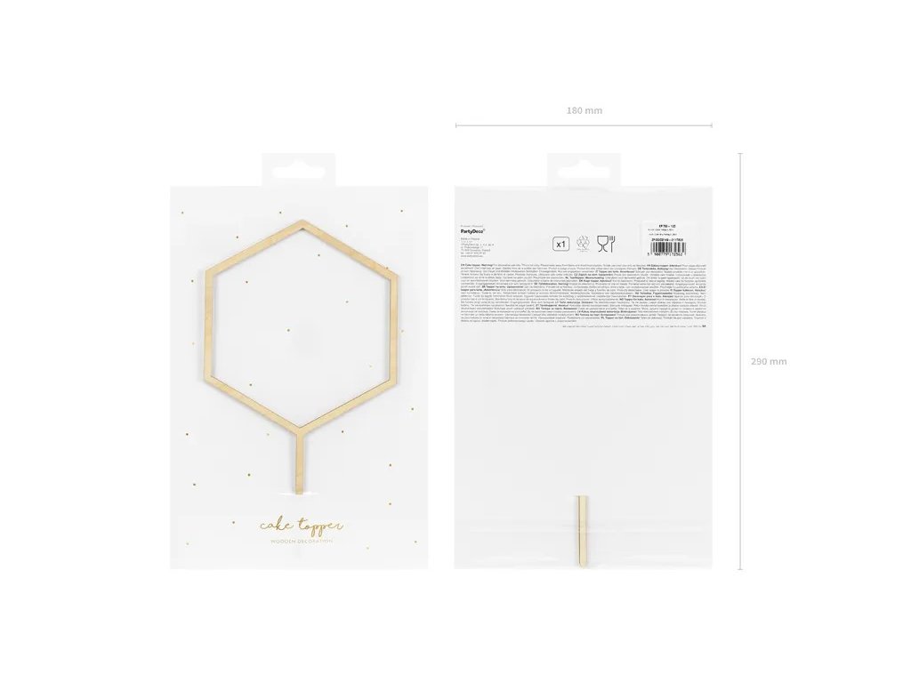 Уникален дървен топер за торта във формата на шестоъгълник е идеалният аксесоар сватбена торта. Тази елегантна декорация може да превърне дори обикновена сватбена торта в уникална, на която всички да се възхищават.