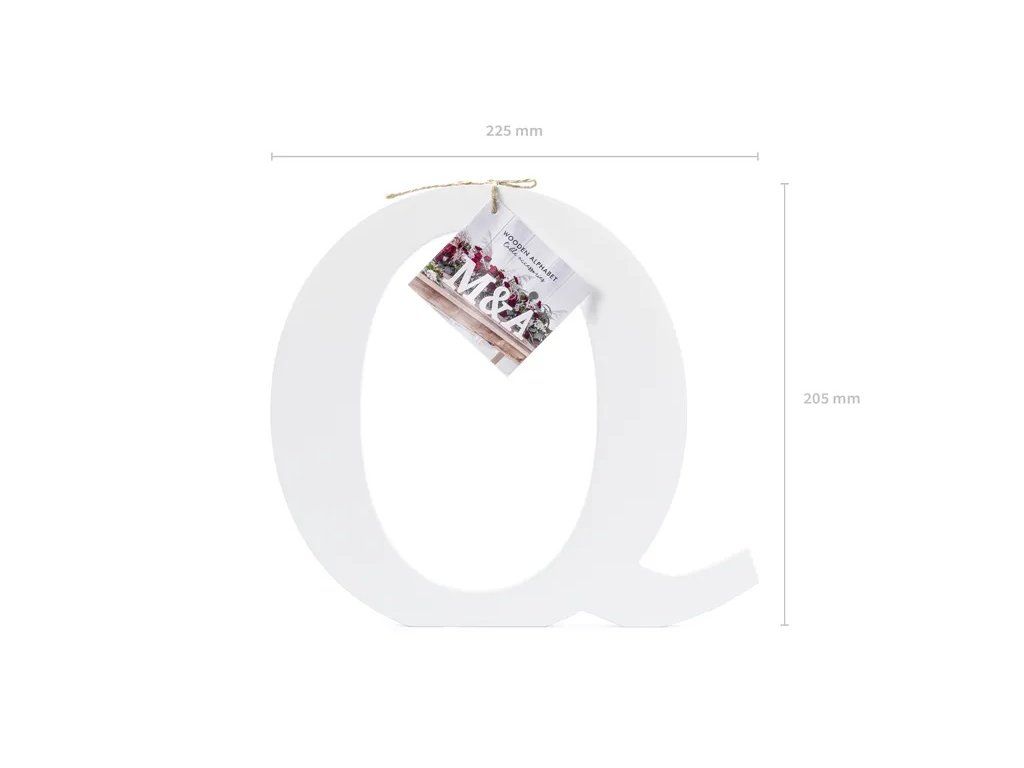 Дървената буква Q е идеалната сватбена декорация за сватбената маса на младоженците. Можете да поставите буквата навсякъде и да украсите сватбената си маса, но и интериора на дома си.