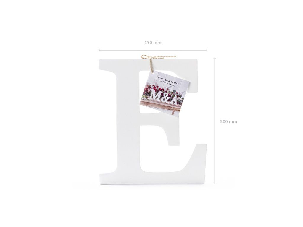 Дървена декорация - Буква Е бяло