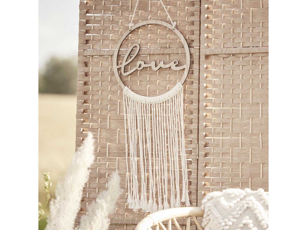 Дървена декорация макраме Love