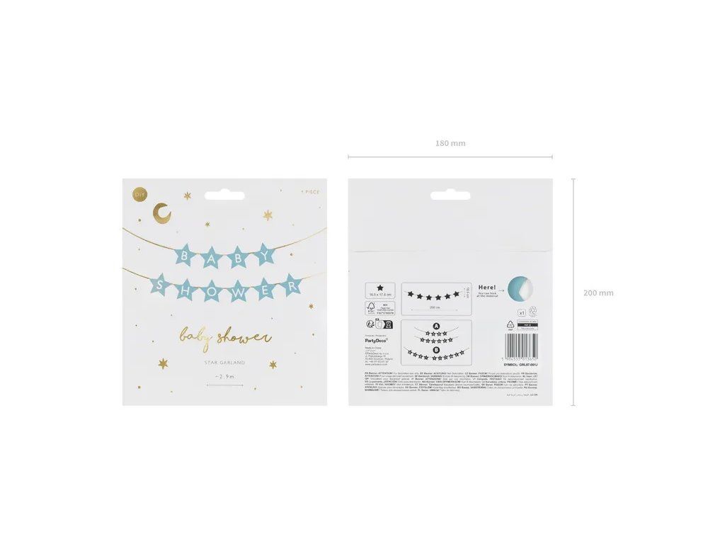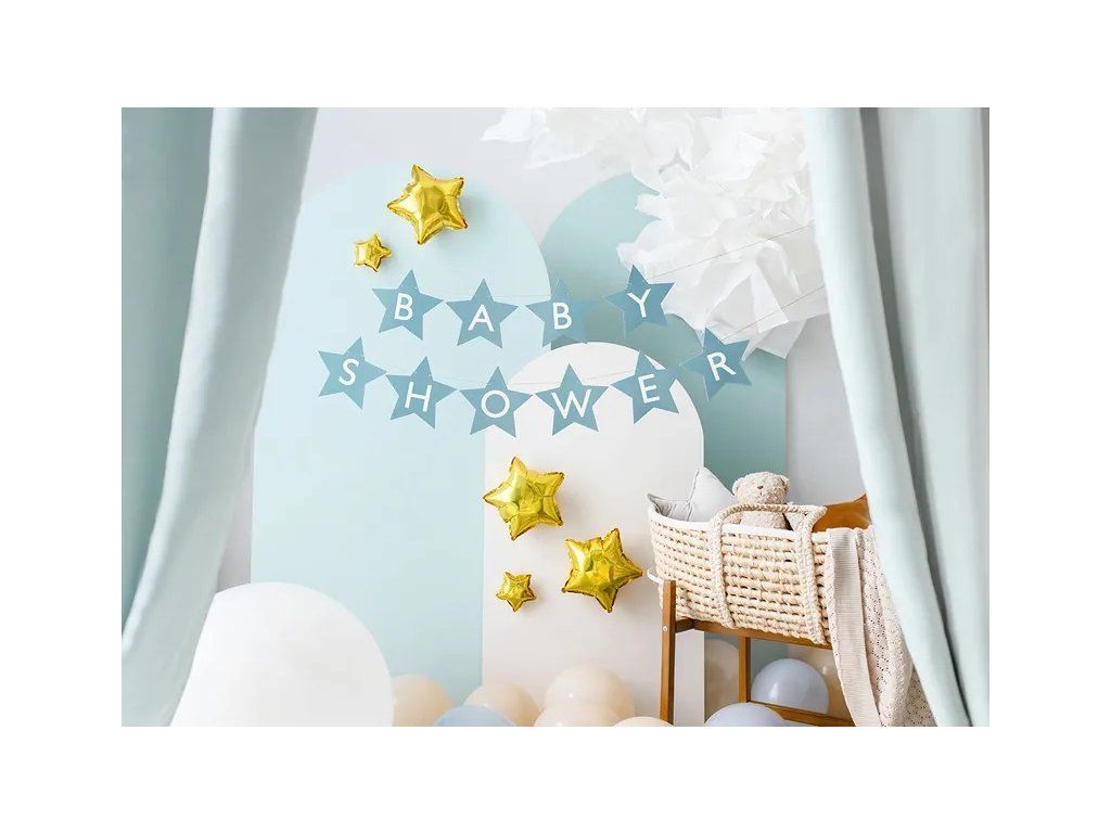 Създайте цветна парти декорация с гирлянд Бейби шауър в синьо. Този банер ще подхожда на всеки празник за бейби шауър.