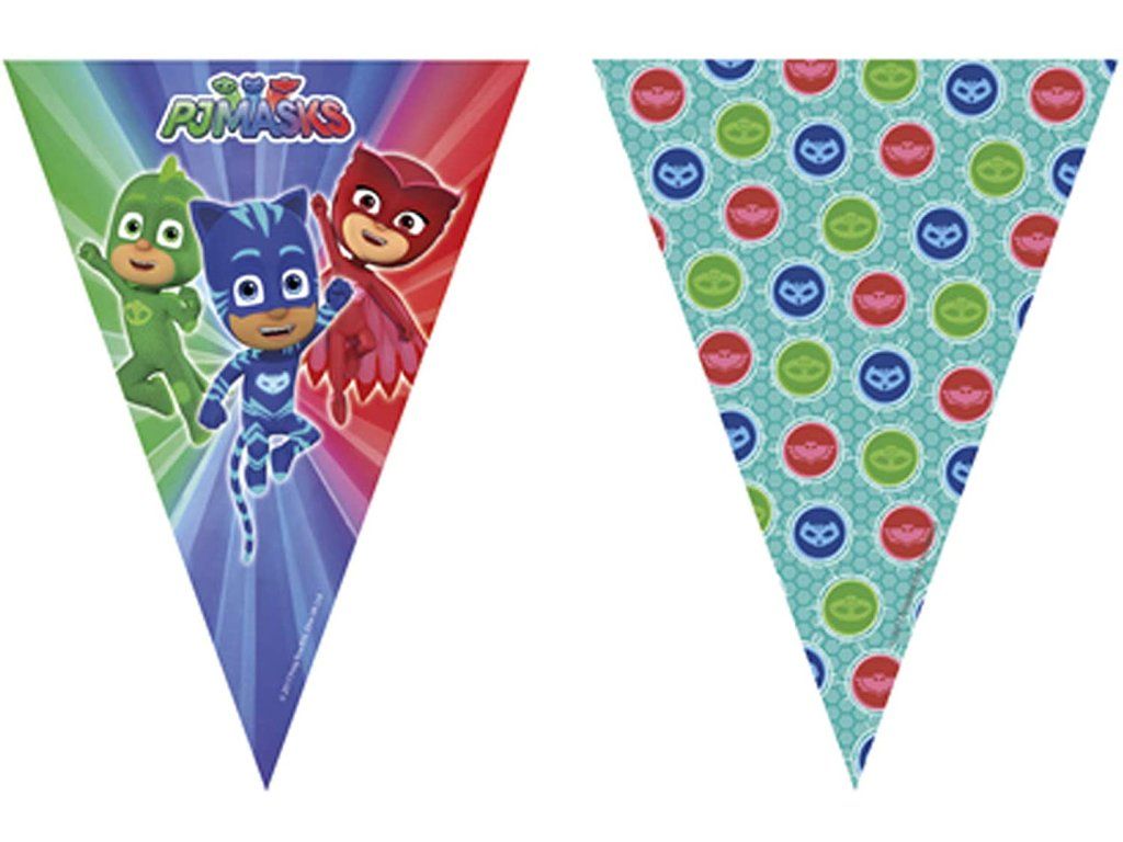 Гирлянд с мотив Пижамаски може да ви помогне с украсата за парти . Без гирлянди не се разминава нито един рожден ден. Тази парти декорация пасва на празненства за рожден ден или детско парти.