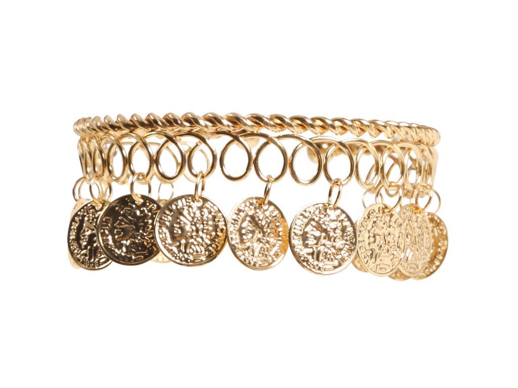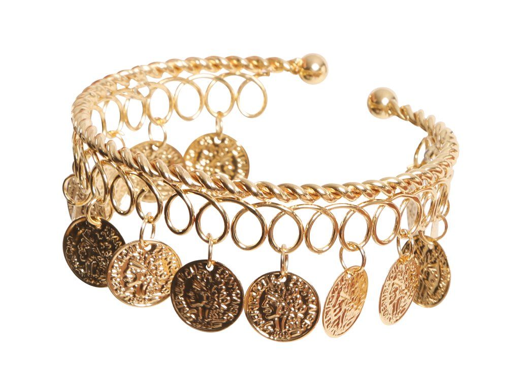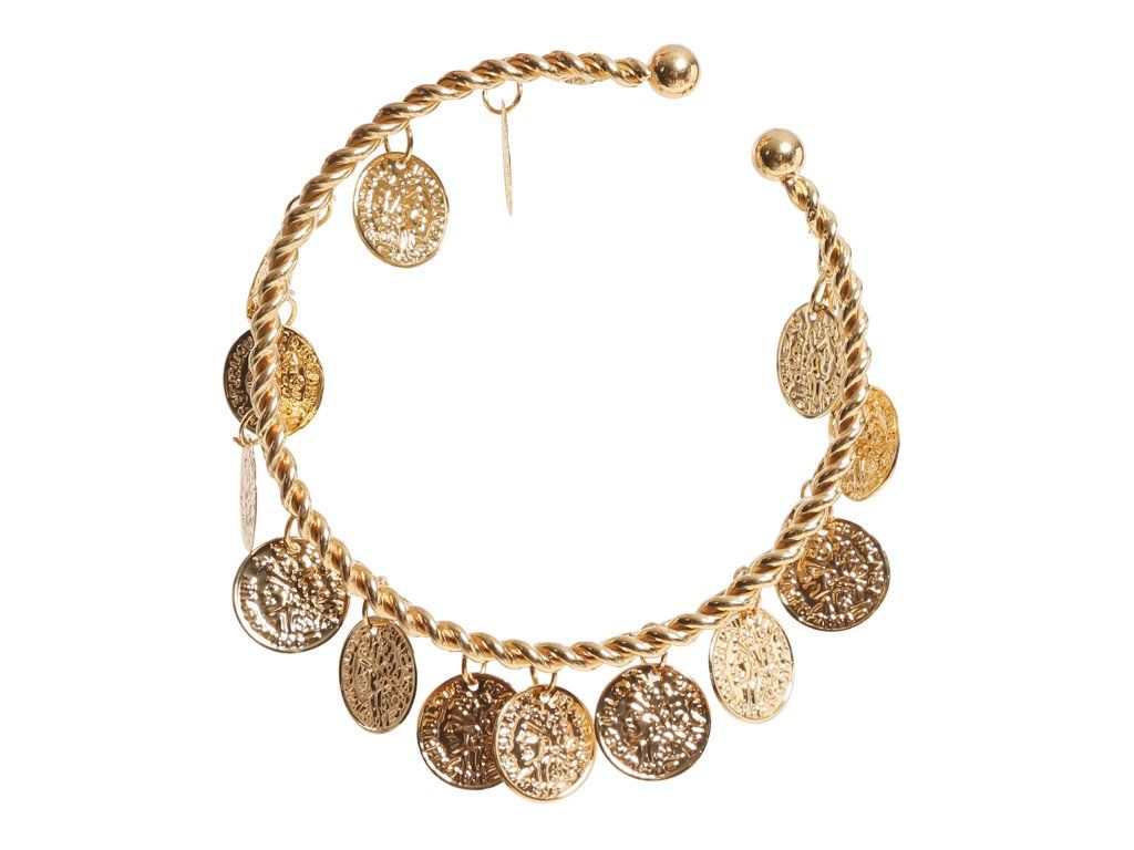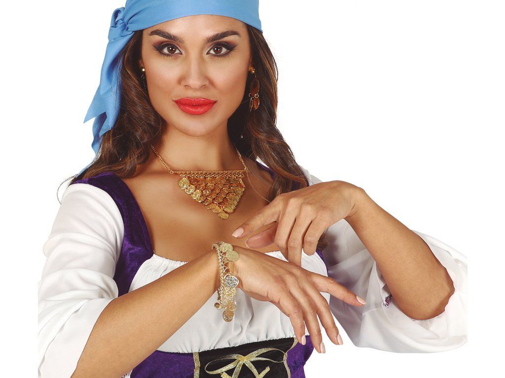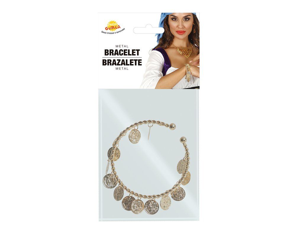 Вашият карнавален или Хелоуински костюм също може да изглежда по-достоверно благодарение на различни аксесоари като тази гривна с монети. Този аксесоар пасва с различни карнавални костюми на циганска тематика , разбира се, че това го оставяме на Вашето въображение.