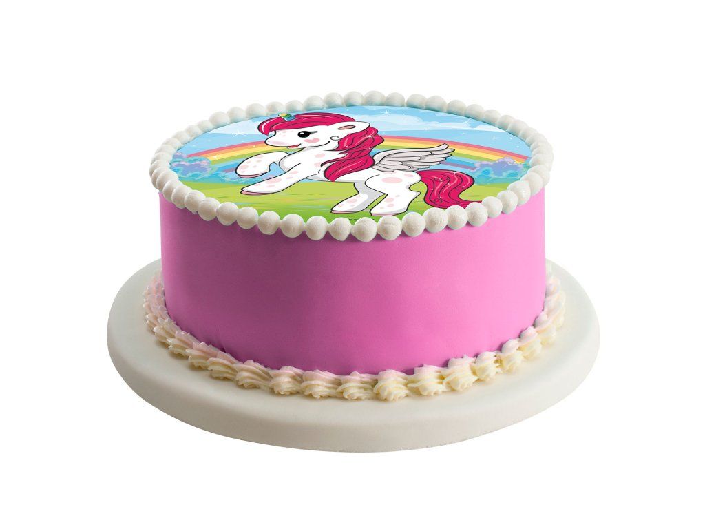 Ядлива хартия с мотив Еднорог и дъга ще бъде идеалното допълнение към торта за детски рожден ден. Използвайте декоративна ядлива хартия, за да украсите детските торти за рожден ден за момичета и момчета. Хартията се откроява върху торти, покрити с лек фондан или крем. Продуктът не съдържа глутен, лактоза, добавена захар и е подходящ за вегетарианци.