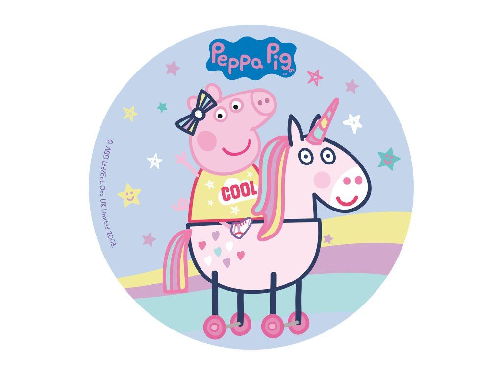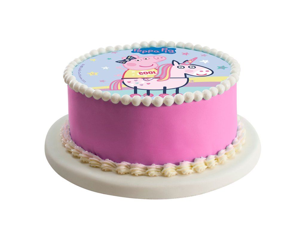 Ядлива хартия с мотив Прасето Пепа ще бъде идеалното допълнение към торта за детски рожден ден. Използвайте декоративна ядлива хартия, за да украсите детските торти за рожден ден за момичета и момчета. Хартията се откроява върху торти, покрити с лек фондан или крем. Продуктът не съдържа глутен, лактоза, добавена захар и е подходящ за вегетарианци.