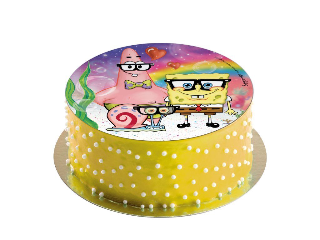 Ядлива хартия с мотив Спонджбоб ще бъде идеалното допълнение към торта за детски рожден ден. Използвайте декоративна ядлива хартия, за да украсите детските торти за рожден ден за момичета и момчета. Хартията се откроява върху торти, покрити с лек фондан или крем. Продуктът не съдържа глутен, лактоза, добавена захар и е подходящ за вегетарианци.