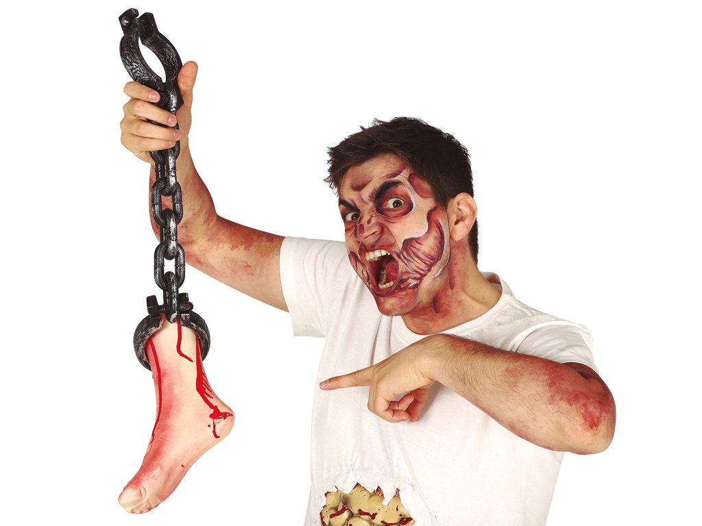 Вашият карнавален или Хелоуински костюм също може да изглежда по-достоверно благодарение на различни аксесоари като тази верига с кървав крак. Този аксесоар пасва с различни карнавални костюми, разбира се, че това го оставяме на Вашето въображение.