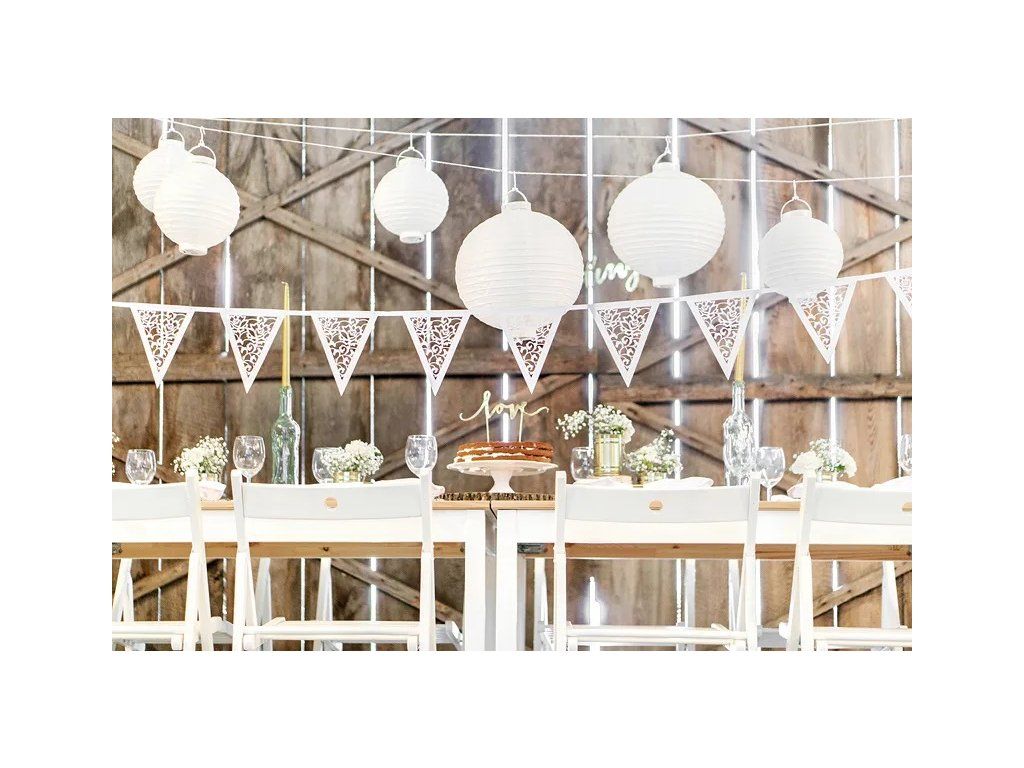 Елегантна декорация, която ще придаде на пространството приятна и уникална атмосфера. Този фенер е подходящ не само като домашна декорация, но ще украси и всяко градинско парти или сватбен празник. Фенерът е изработен от хартия. Той е идеален аксесоар за украса на парти на открито или сватбен прием.