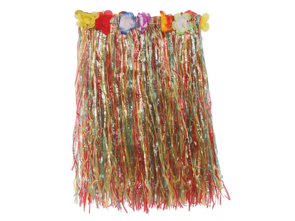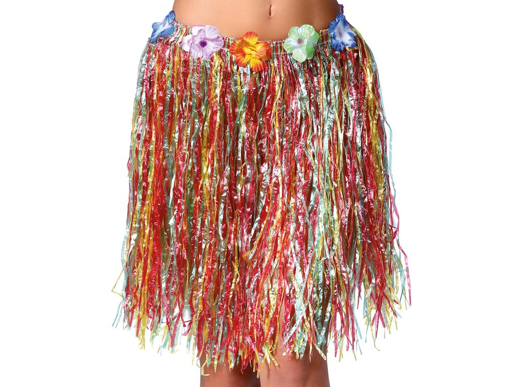 Хавайската пола не бива да липсва на никое парти в Хавайска тема! Допълнете я с цветен гирлянд и ще имате страхотен костюм.