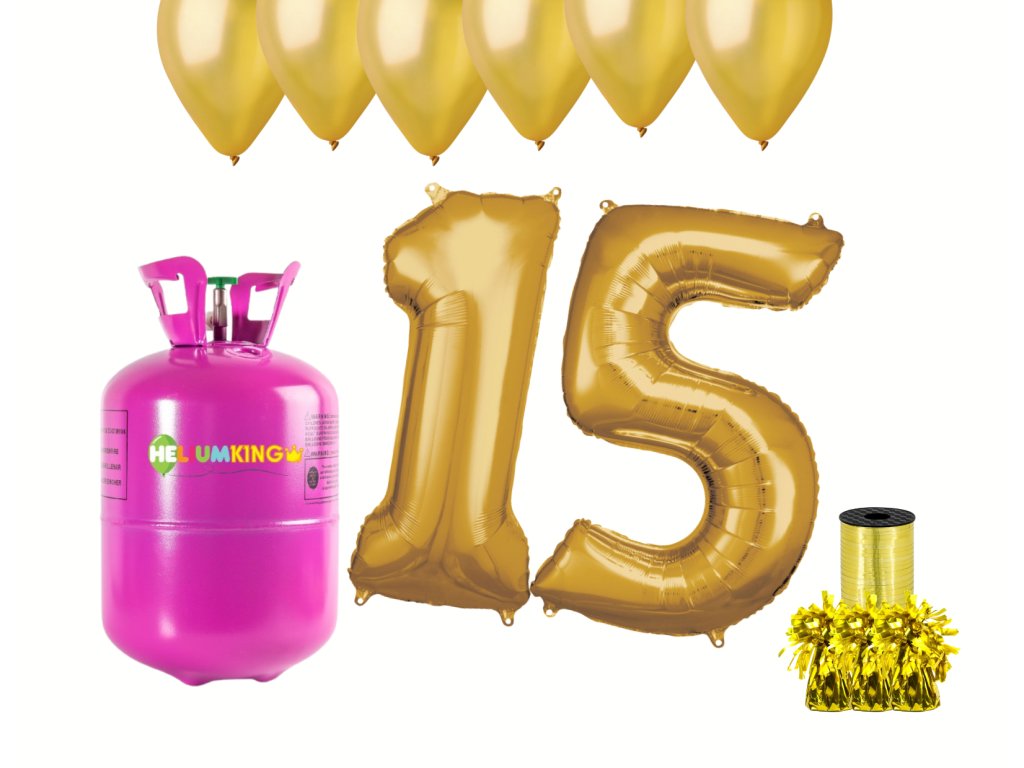 Хелиев парти комплект за 15-ри рожден ден със златни балони