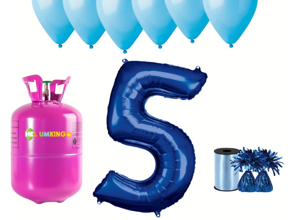 Хелиев парти комплект за 5-ви рожден ден със сини балони