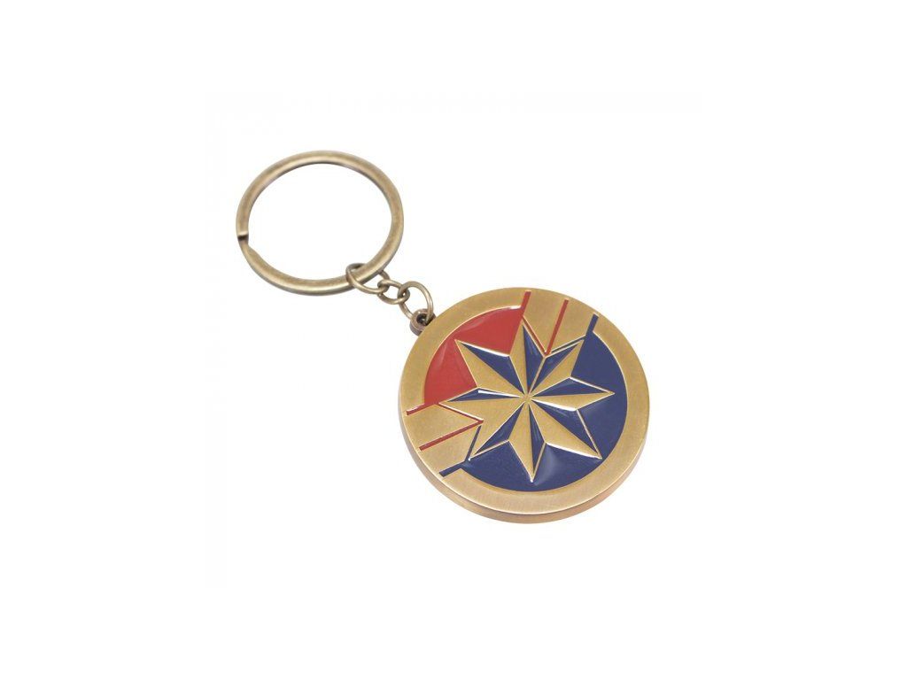 Металния ключодържател е подходящ подарък за всички любители на комиксите на Marvel. Има логото на Капитан Марвел в златисто-синьо-червено.