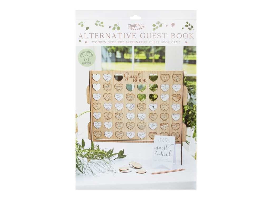Дървената сватбена книга за гости съдържа 56 сърца, 28 от които са в бял цвят и 28 - в естествен дървесен цвят. Книгата за гости е лесна за сглобяване с всички доставени елементи, просто помолете гостите да се подпишат на жетона и да го поставят в квадратния държач в един ред.
