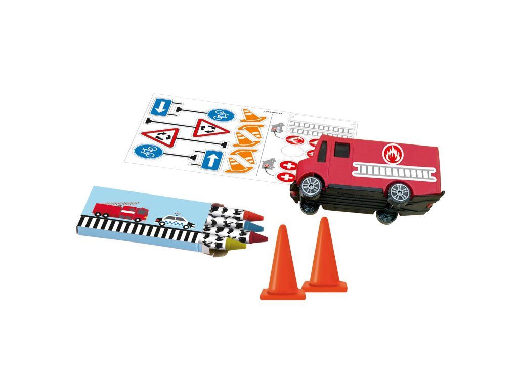 - съдържание: 8 опаковки вакса, 4x пожарна кола, 4x конусa, 8x стикери