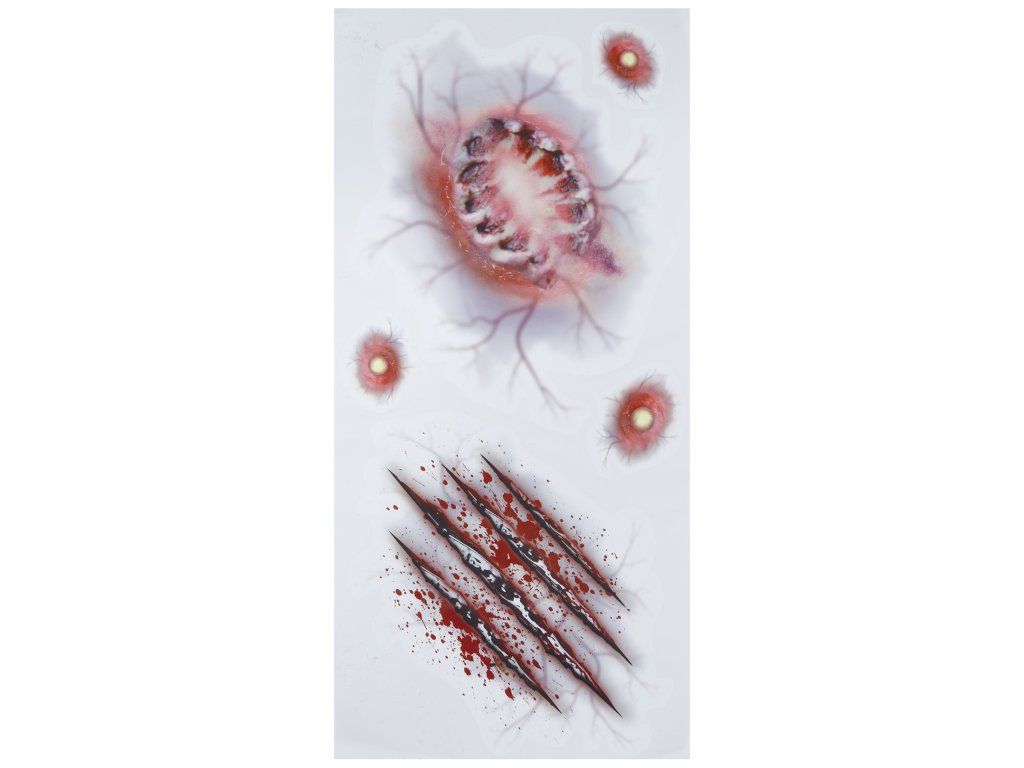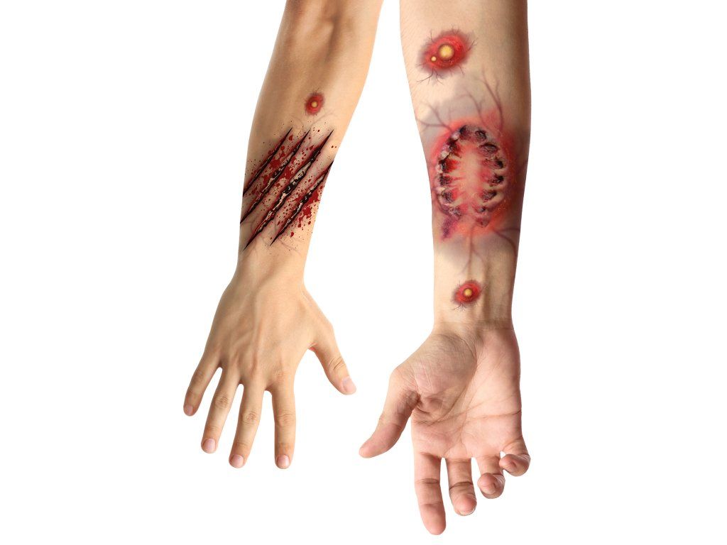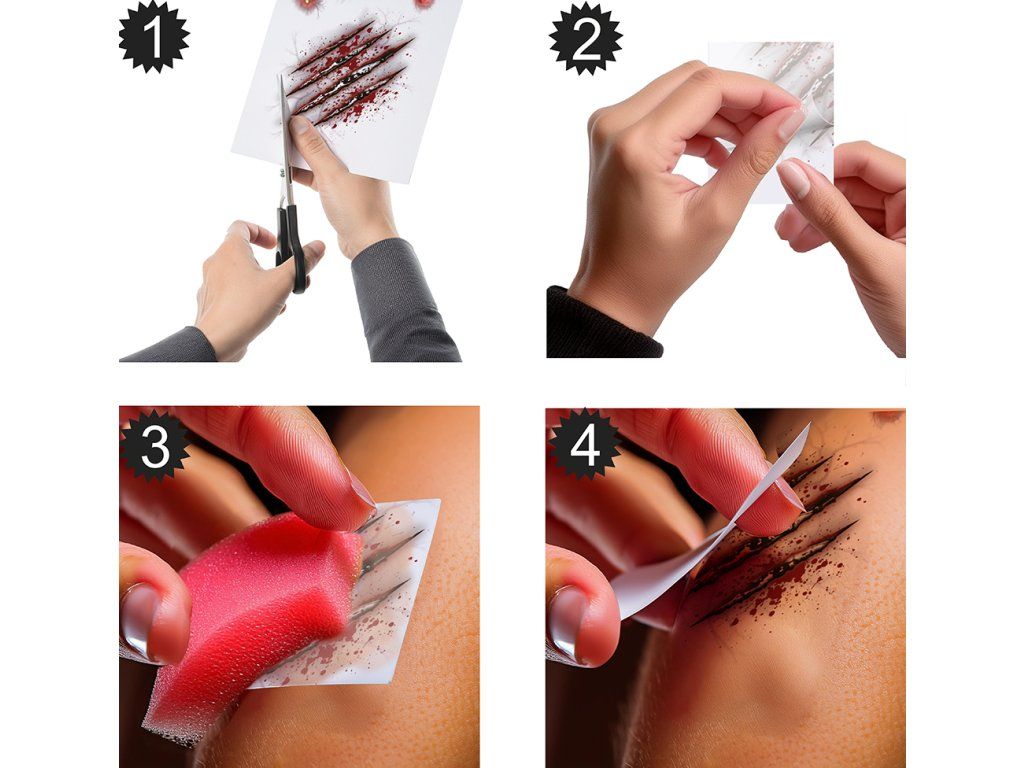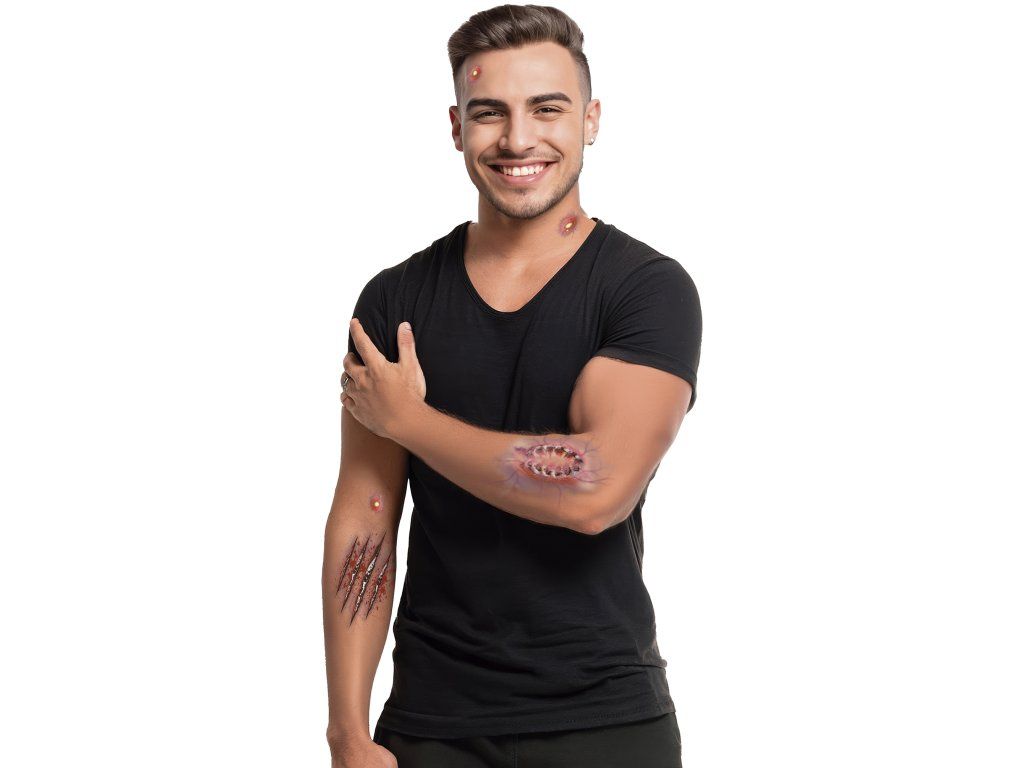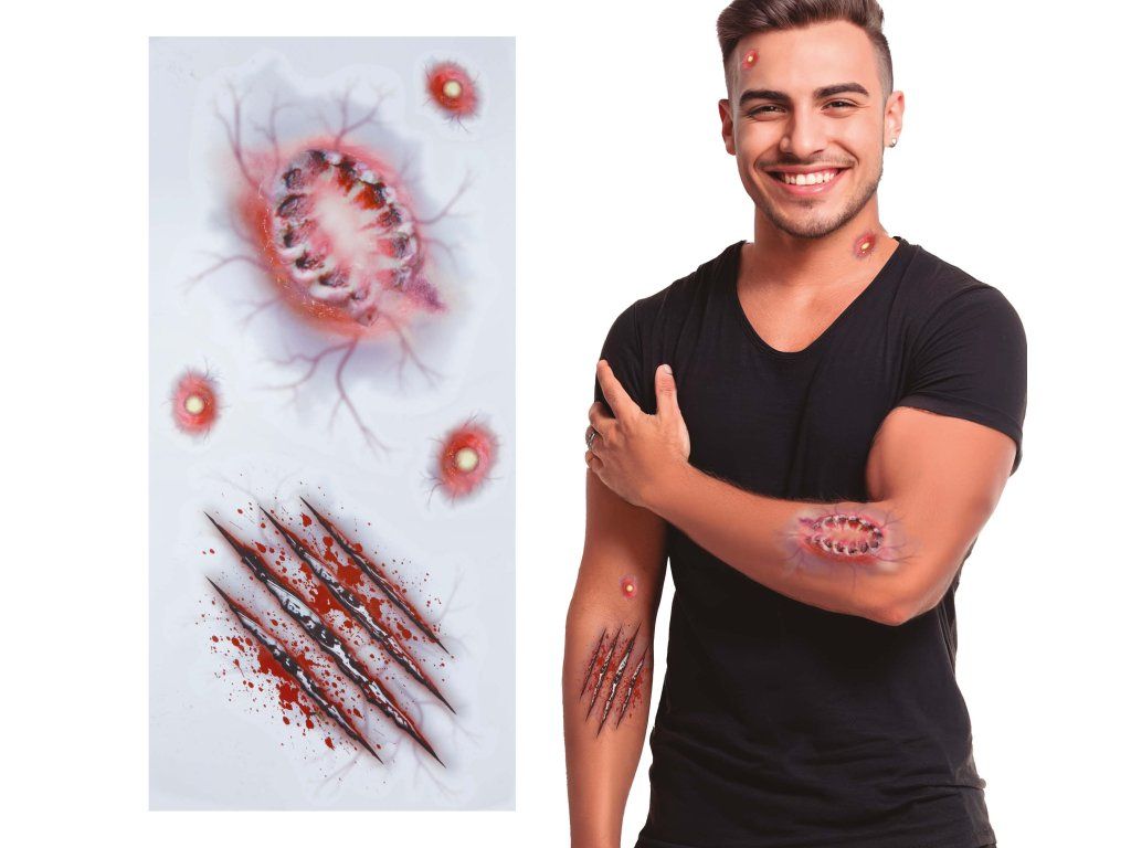 Вашият карнавален костюм или костюм за Хелоуин може да изглежда по-автентичен благодарение на различни аксесоари, като например татуировки с рани. Този аксесоар е подходящ за различни карнавални костюми, но, разбира се, използването му зависи от вашето въображение.
