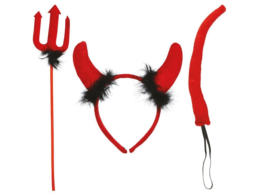 Вашият карнавален или Хелоуински костюм също може да изглежда по-достоверно благодарение на различни аксесоари като този Комплект Жена дявол. Този аксесоар пасва с различни карнавални костюми на тема дявол, разбира се, че това го оставяме на Вашето въображение.