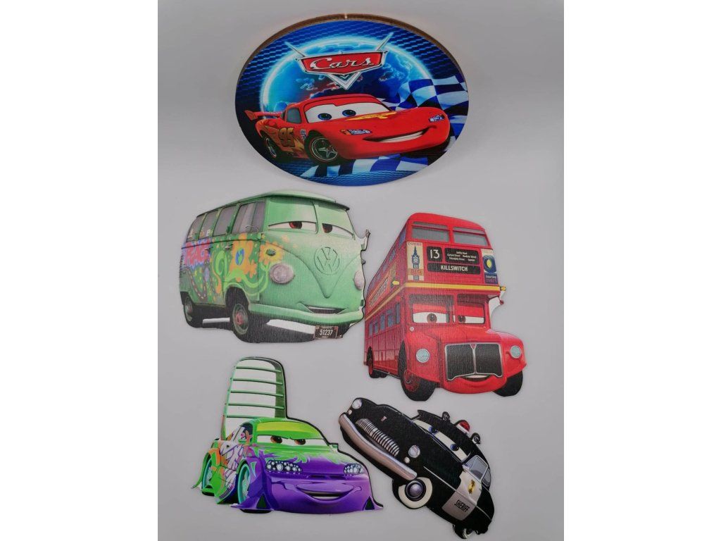 Оригинален дървен магнит с цветна щампа от любимата анимация Количките. Той ще зарадва всяко дете от пръв поглед, подходящ е и за подарък за детска група или като награда за различни състезания. Магнитът може да се използва и като топер за торта. Просто залепете клечка за зъби на гърба на магнита. След празника магнитът ще остане за спомен на детето.