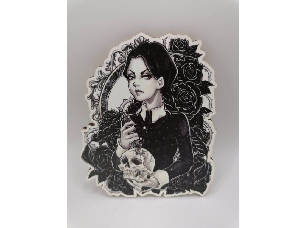 Подгответе парти за рожден ден и не забравяйте тортата! Добре познатият герой Уенсдей Адамс, ще бъде идеалното допълнение към всяка торта, просто залепете дървено шишче на гърба на тортата. Магнитът не е предназначен за ядене, но запазването му ще го превърне в спомен за един красив рожден ден и празник. Зарадвайте всеки фен на Уенсдей Адамс!