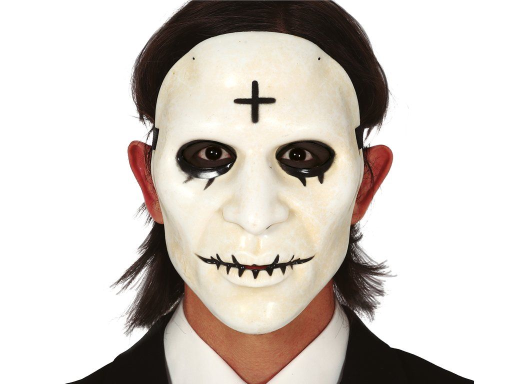 Търсите маска за карнавал или друго парти? Може би ще ви заинтригува тази карнавална бяла маска с кръст от филма Чистката, която е създадена за карнавал, празненство, парти или друг повод. Тази маска е подходяща за тема хорор. Приложението на маските вече оставяме на вас.